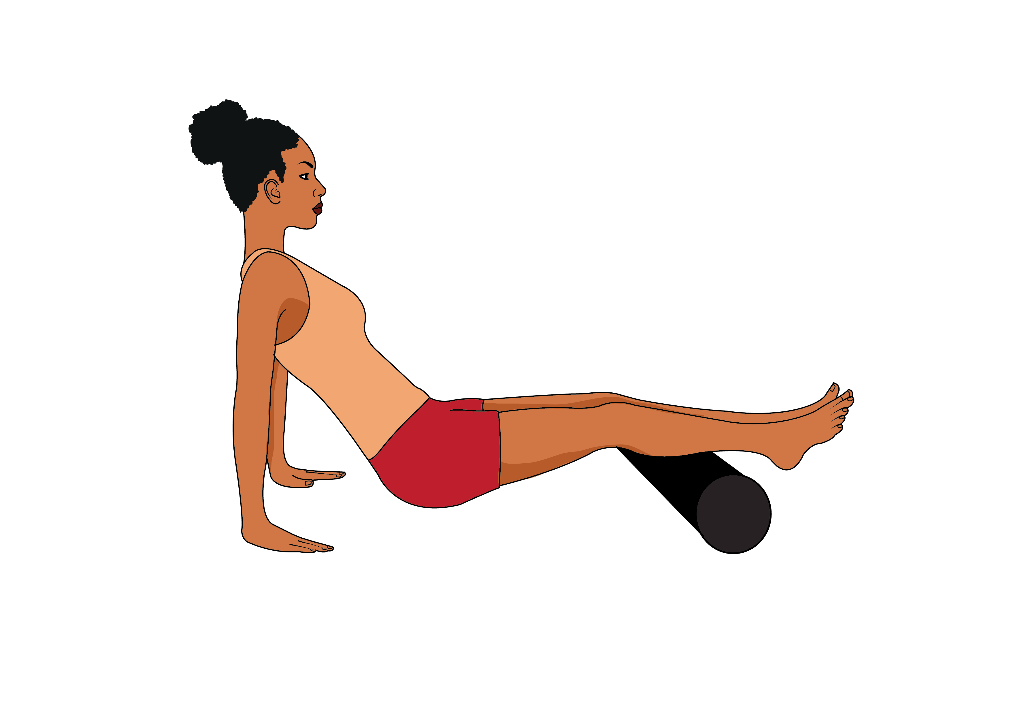 If you’ve been working your hamstrings or calves lately, you’ll need this release. Position the roller under the back of your thighs or calves, then straighten your leg, keeping your heel off the floor. Press your hands into the floor and slightly raise your buttocks (Reverse Plank). Shift your body forward and backward, letting the foam roller massage your thighs or calves.