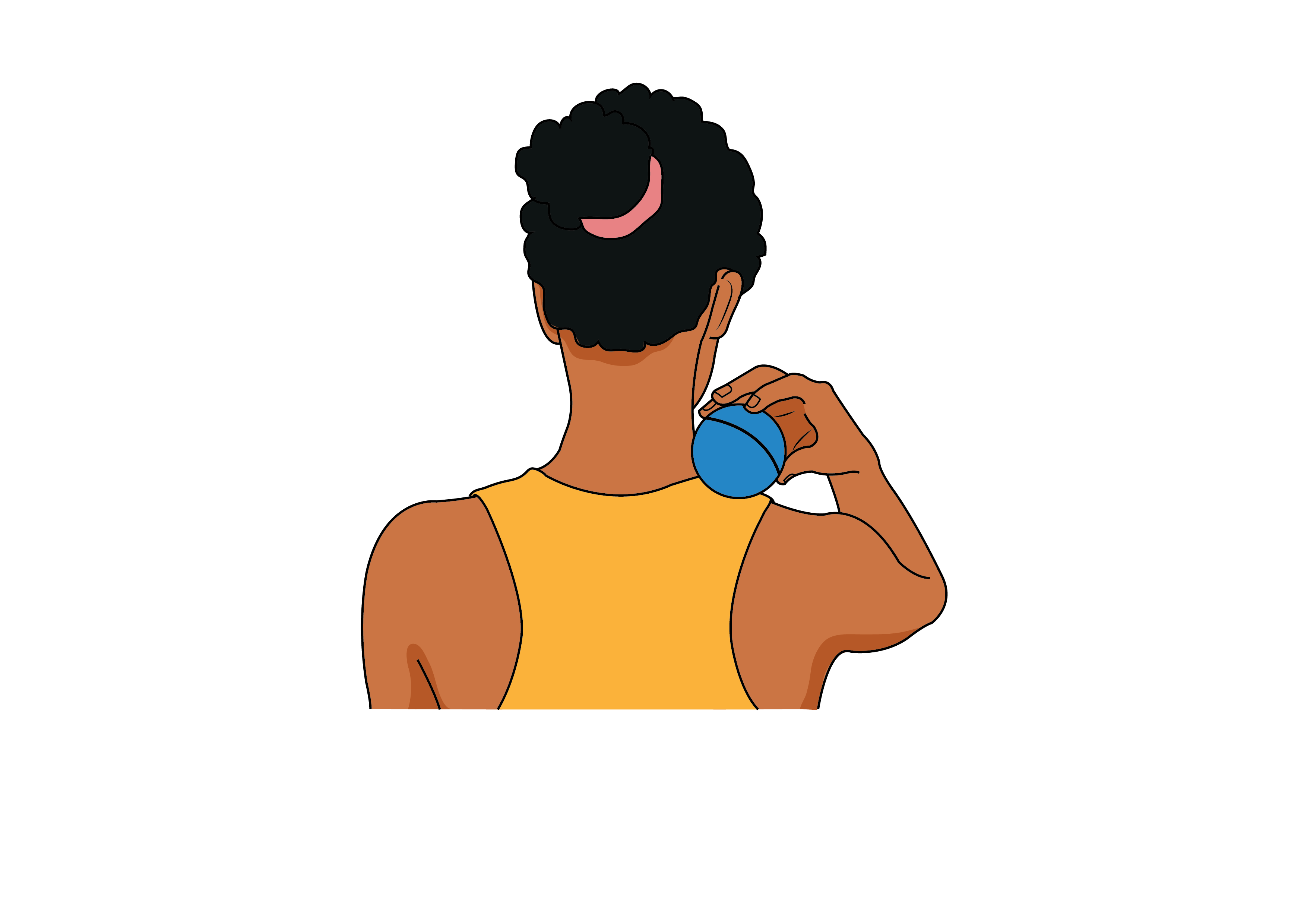 Stand with your back against the wall. Place the massage ball between the stressed area and the wall. Push back into the wall using the pressure to release the pain. Move in small circular motions making sure you avoid direct contact with your scapula.
