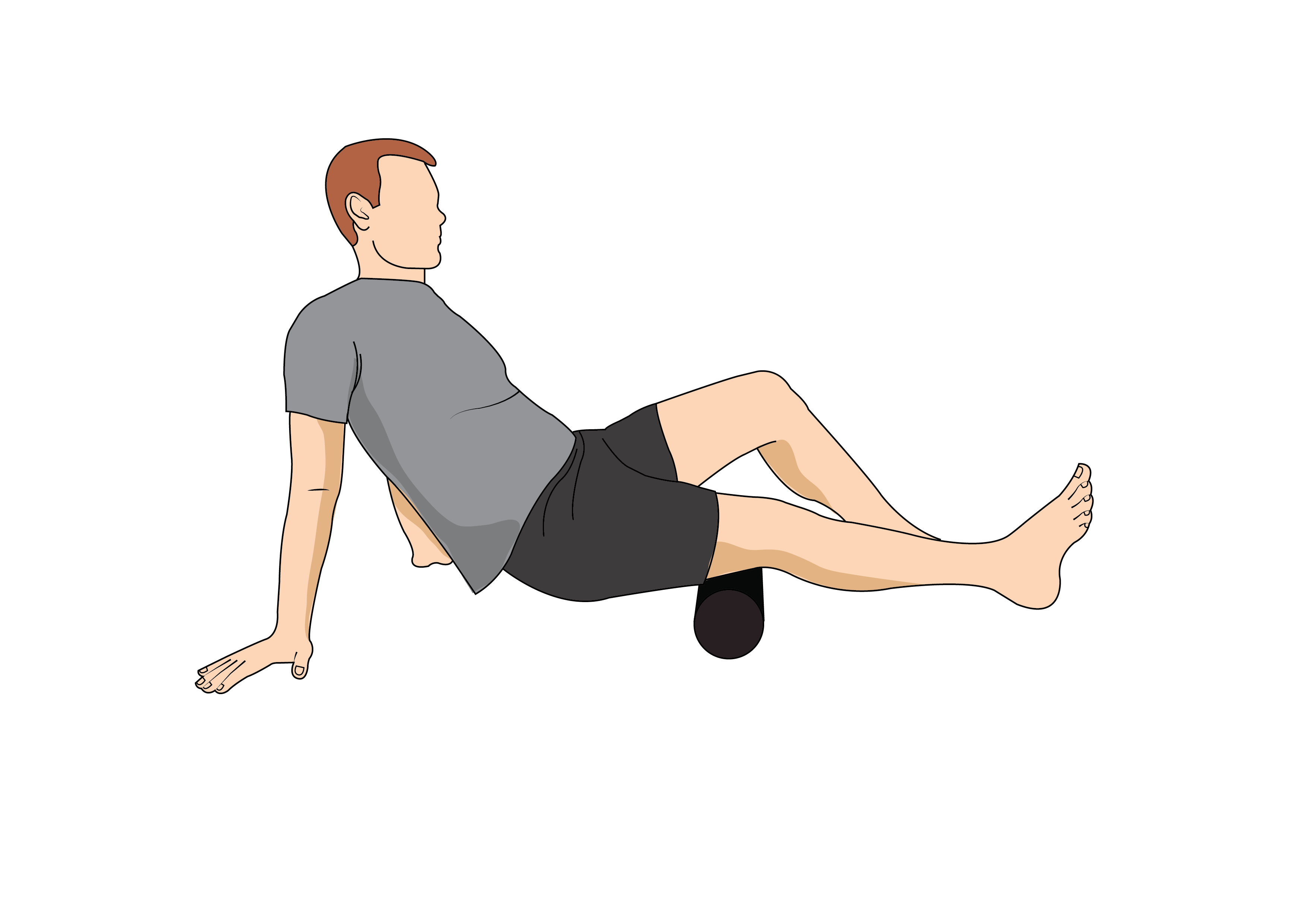 If you need a deeper massage, simply cross your leg you’re working over the opposite thigh while bending your elbow taking advantage of gravity.